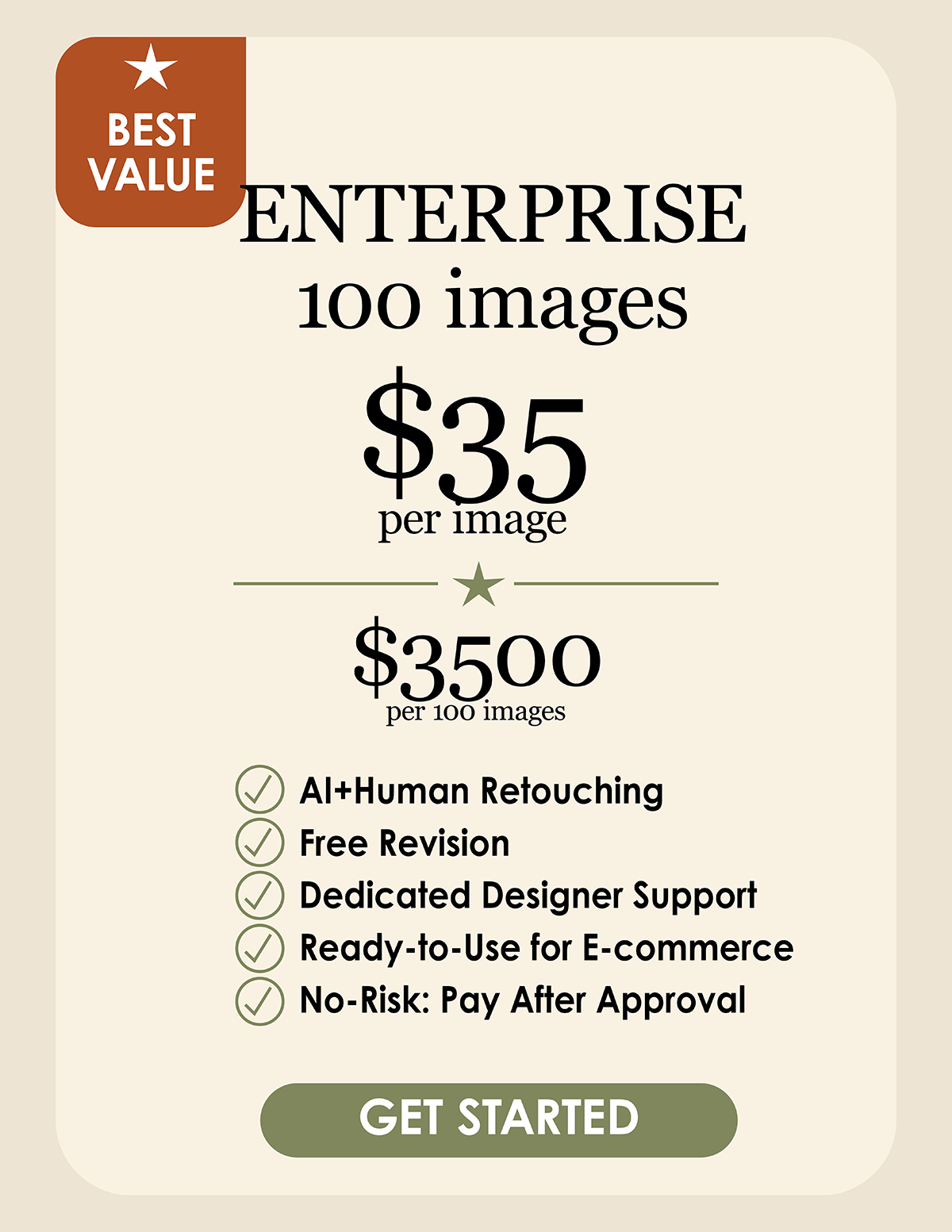 The best value for high-volume sellers: 100 staged and retouched images at unbeatable bulk pricing.